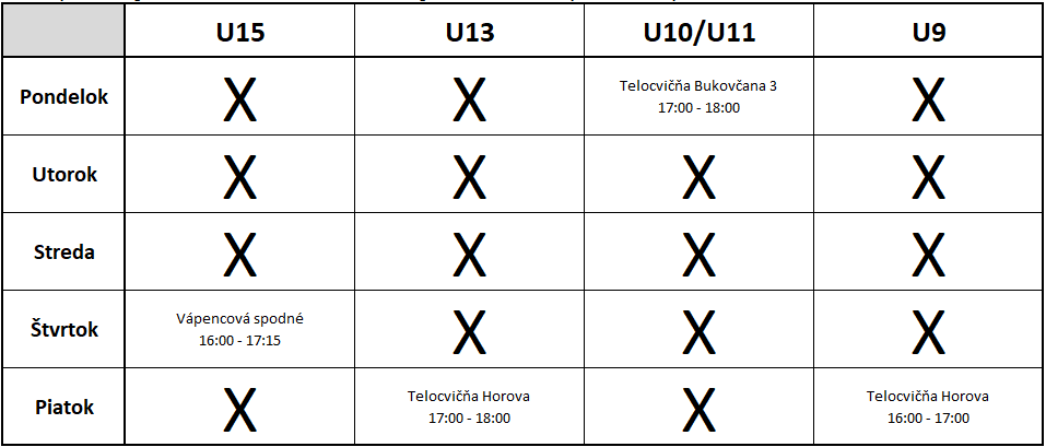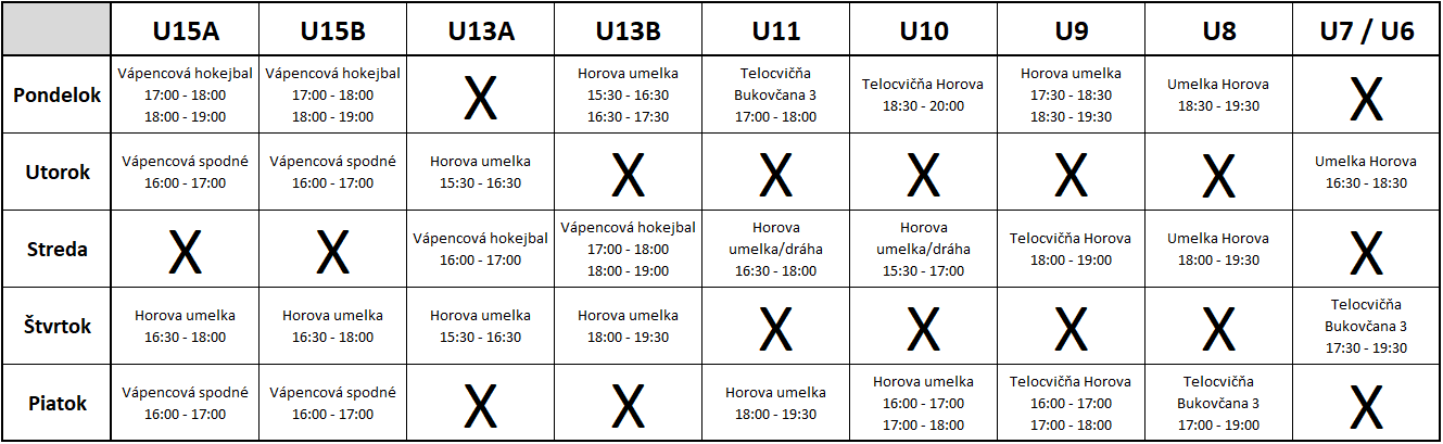 Tréningový harmonogram pre kategórie U6 - U15 sezóna 2025/2026: